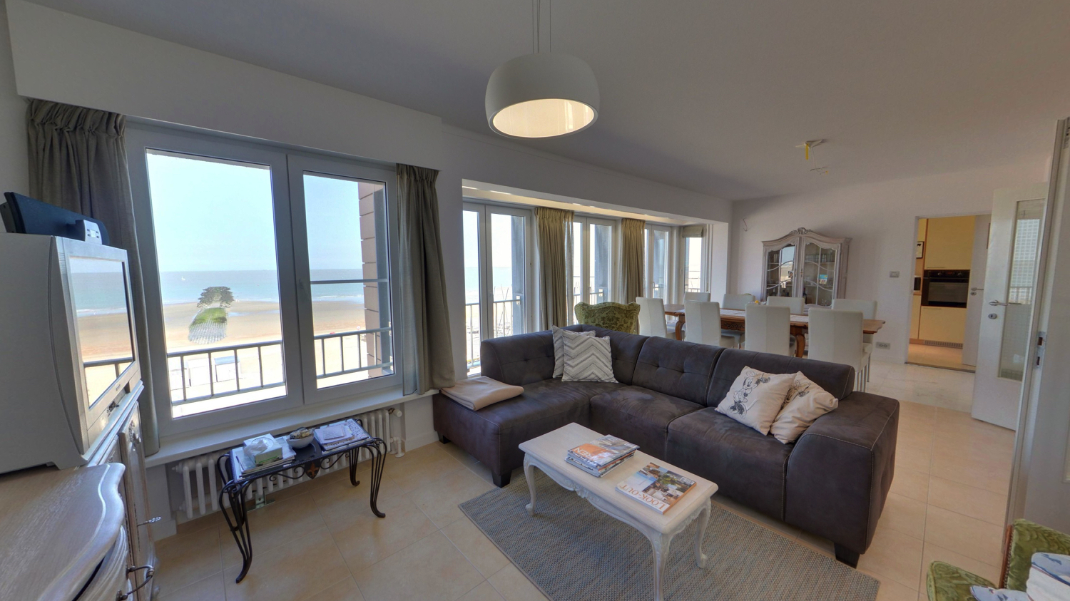 Appartement spacieux avec vue sur mer, façade de 12 mètres, situé sur le Digue à Duinbergen. A 50m du club de voile RBSC et tout près du Beachclub Anemos. Living spacieux avec cuisine séparée, chambres rénovées avec lavabo et nouveaux lits Auping.