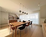 Magnifique appartement duplex situé dans une résidence neuve à Duinbergen. Cet appartement dispose à l'avant d'un salon spacieux avec une cheminée à gaz et accès à la terrasse, à l'arrière il y a une cuisine spacieuse avec un coin repas et un accès à la deuxième terrasse. A l'étage supérieur, il y a 3 chambres spacieuses, dont une avec une salle de bain. En suite, il y a aussi une salle de douche. Un garage box dans l'immeuble est inclus. | |||||||||